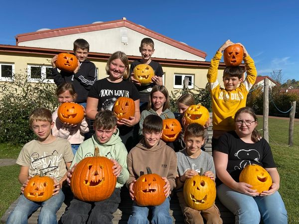 Eine IBF-Gruppe schnitzte Jack-o-lanterns und wünscht allen wunderschöne Herbstferien Fotos