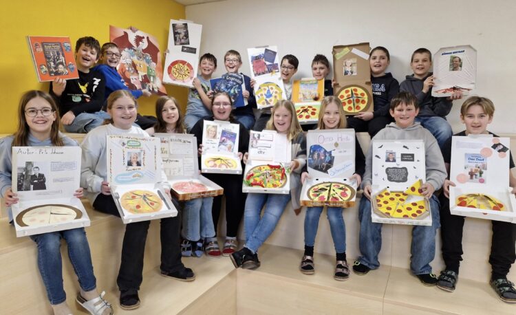 Kreativ gestaltete Pizzakartons erstellten die Schüler der 1b für ihre Buchpräsentationen. Pizzas, die begeistern – guten „Lese“-Appetit! ![]()