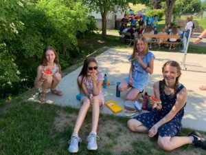 Melonenjause in der Hitzepause 18 Juni,2021 Andrea Neuwirth Die Schülerinnen und Schüler freuen sich über eine gesunde Jause im Freien Fotos