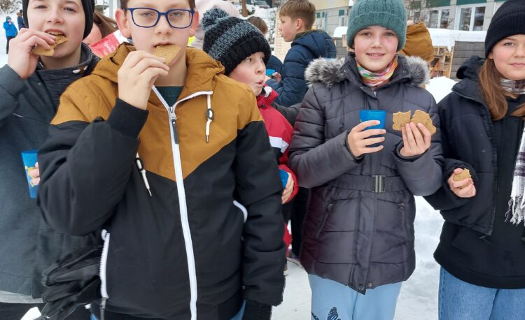 Anschließend gab es im Schulfreiraum heißen Tee zum Aufwärmen