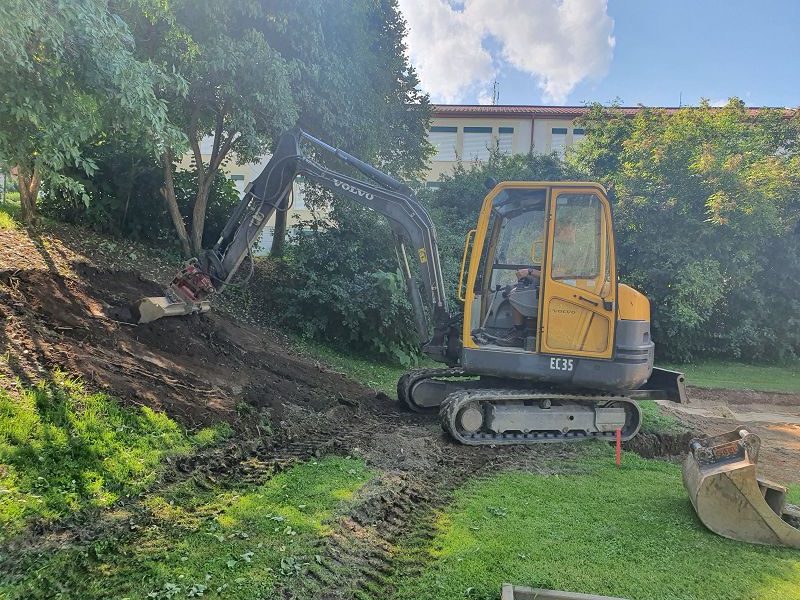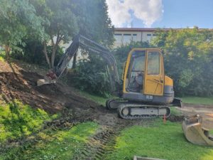 Seit einigen Jahren wurden von Schülerinnen und Schülern und Lehrpersonen der VS und NÖMS Groß Gerungs Ideen gesammelt und gemeinsam mit dem Familienland NÖ und der Stadtgemeinde Groß Gerungs wurden Pläne erstellt, besprochen, verändert und endlich ist es so weit! Heute starteten die Mitarbeiter des Bauhofes Groß Gerungs mit den Baggerarbeiten, sodass in den nächsten Wochen in Zusammenarbeit mit der Firma Spiel Sport Motorik Penz neue Bewegungsmöglichkeiten für die Schülerinnen und Schüler aufgebaut werden können. Gemeinsam mit dem Familienland NÖ werden im September Bäume, Zier- und Beerensträucher gepflanzt. Wir freuen uns sehr darauf, den Schülerinnen und Schülern in den Pausen einen Bewegungsraum bieten zu können, wo sie klettern, balancieren, schaukeln, rutschen, spielen und natürlich auch ausruhen und tratschen können.