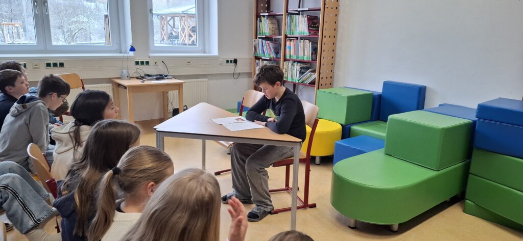 In den ersten beiden Unterrichtsstunden lasen Schülerinnen und Schüler Märchen, Gedichte, Kurzgeschichten und Sagen. Mit viel Freude und Ausdruck wurden die Texte vor Mitschülerinnen und Mitschülern vorgetragen und sorgten für eine stimmungsvolle Atmosphäre in der Schul- und Stadtbücherei. Eine besondere Bereicherung war, dass viele der gelesenen Beiträge von den Schülerinnen und Schülern selbst verfasst worden waren. Dadurch wurde nicht nur die Freude am Lesen, sondern auch die Kreativität und Schreibfreude der Kinder und Jugendlichen eindrucksvoll sichtbar.