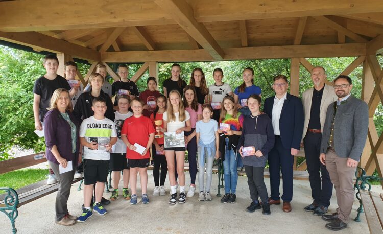 Wir gratulieren der 2a zum 3. Platz (380 Punkte) bei den Waldjugendspielen 2024. Die 2b erreichte 379 Punkte und verfehlte so nur knapp einen Stockerlplatz. Bei der Siegerehrung gratulierten Bezirkshauptmann Dr. Markus Peham, Bezirksforsttechniker Dipl.-Ing. Dr. Gerald Dirnberger und SQM RegR Fritz Laschober zu den tollen Leistungen.